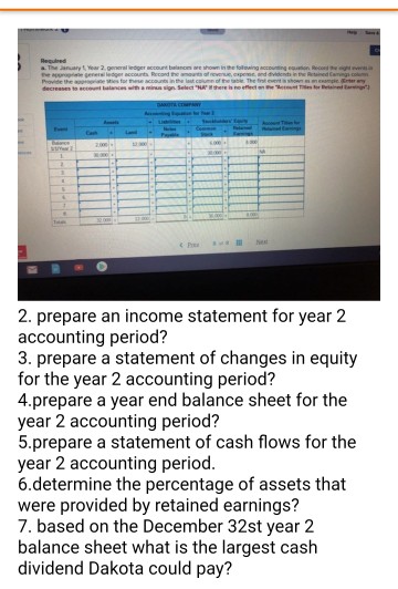 Paid 1000 cash for utilities expense. Paid 45000 cash for other operating expenses. Acquired an additional 33000 cash. Dakota Company experienced the following events during Year 2.