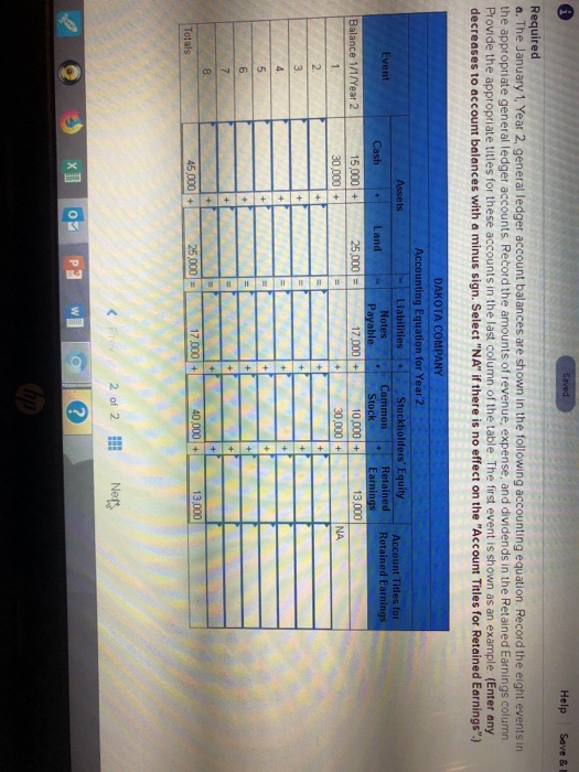 Dakota Company Experienced The Following Events During Xlsx Assets Liabilities Notes Event Cash Land Payable Bal 1 1 2 10 000 22 500 1 Course Hero