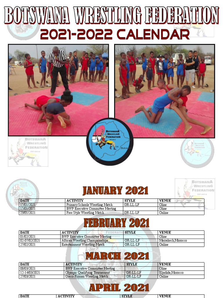 2021 2022 Botswana Wrestling Federation Calendar Of Events Combat Sports Wwe Shows